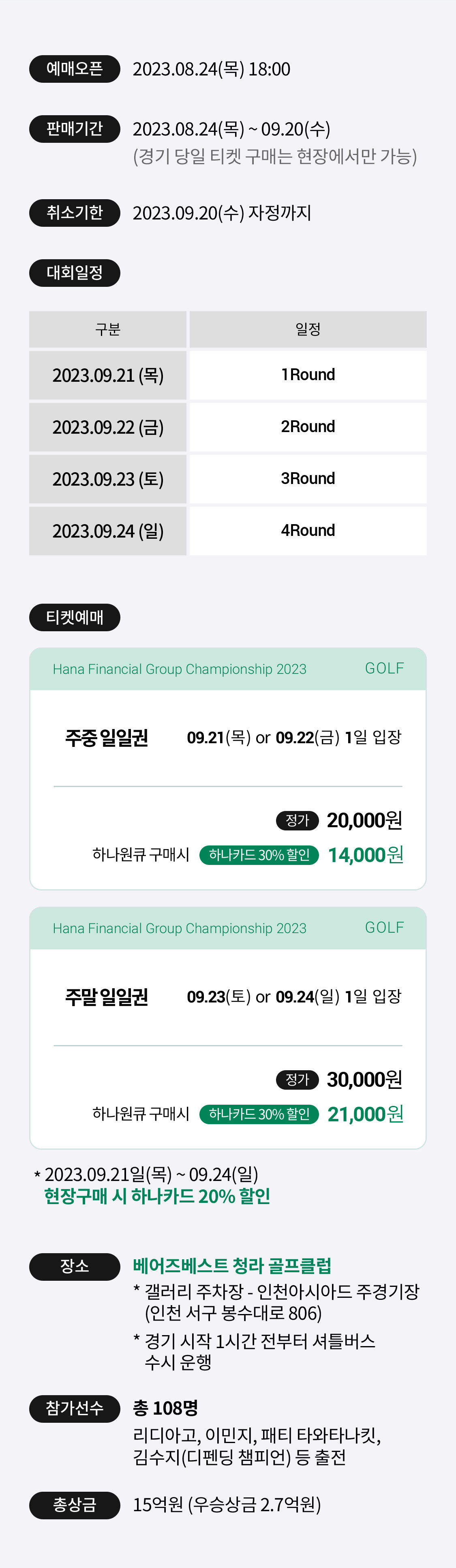 ※ 2023년 09월 21일(목) ~ 09월 24일(일) 현장구매 시 하나카드 20% 할인