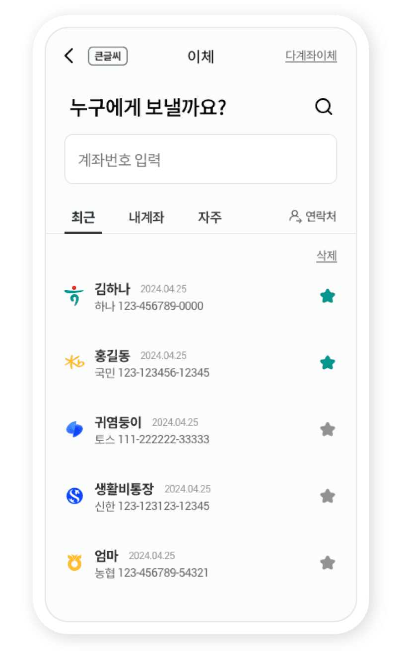 쉽고 빠른 이체